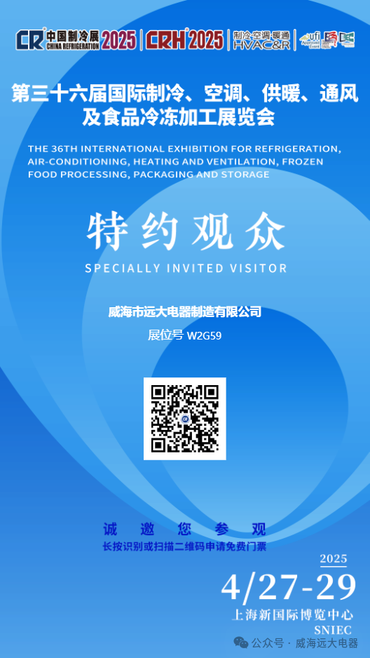 您好!非常感謝您長(zhǎng)期以來對(duì)威海遠(yuǎn)大電器的大力支持,第三十六屆中國制冷展即將亮相上海,屆時(shí)我們展會(huì)現(xiàn)場(chǎng)將會(huì)進(jìn)行我司產(chǎn)品陳列展示,在此,我們誠摯的邀請(qǐng)您蒞臨我司展位參觀指導(dǎo),我們將會(huì)為您提供貼心、專業(yè)的產(chǎn)品與技術(shù)服務(wù)。